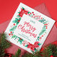 Watercolor Poinsettia, Holly and Pine Christmas Holiday Card