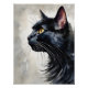 Watercolor Portrait of Black Cat Profile Pose Poster