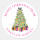 Watercolor Preppy Bright Christmas Tree Address Classic Round Sticker