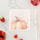 This elegant and charming baby shower paper napkin features a beautiful watercolor illustration of a pumpkin with a delicate pink ribbon, perfect for celebrating the upcoming arrival of a little one in the fall season.