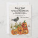 Four jovial jack-o-lanterns and a black crow perched on a fence create this stunning Halloween party invitation.