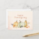 This charming Thanksgiving postcard features a delicate watercolor illustration of pumpkins and autumn foliage in soft shades of orange, green, and beige. The minimalist design and gentle colour palette create a serene and inviting feel, perfect for sharing your warm holiday wishes. Whether sending to family or friends, this postcard beautifully captures the essence of a peaceful and bountiful Thanksgiving season.