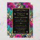 Watercolor Purple and Teal Flowers Wedding Invitation