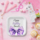 Watercolor Purple Bow Sweet 16 Birthday Paper Plate