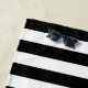 Watercolor Purple Iris Black White Stripes Pattern Beach Towel