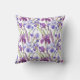 Elegant watercolor purple iris floral pattern featuring vibrant violet, lavender, and magenta blooms with fresh green leaves. This artistic botanical design adds a soft romantic touch to any living room, bedroom, or cozy space. Perfect as a decorative throw pillow for spring decor, feminine interiors, garden-inspired homes, or anyone who loves bold floral statement pieces.