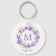 Watercolor Purple Magnolia Wreath Monogram Key Ring