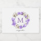 Elegant and gentle wreath Magnolia blossom watercolor art in white and purple and a monogram.