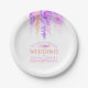 Loose cascading flowers vine type flowers botanical watercolor painting art wedding paper plates. Beautiful floral art loose watercolor art design ideal in pretty shades of purple, orange, coral and pink. © Original watercolor art and design by Sarah Trett www.sarahtrett.com for www.mylittleedenweddings.com