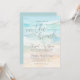 Simple Seaside Watercolor Summer On The Beach Wedding Invitation. A calming blue and tan beach watercolor background sets the stage for an elegant seaside wedding. The artwork shows a close-up of the shore meeting gentle ocean waves—offering a soft, slightly abstract take on a coastal setting.