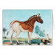 This product features a print of beautiful watercolor painting of a quagga, a now extinct species of zebra. Brightened and restored, this beautiful black, white and brown equine stands out against a pale blue sky. It has a sweet, cute face with big dark eyes.