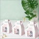 Easter favour boxes featuring a Racoon with cherry blossoms and Easter eggs, and a pink pastel background. Customisable.