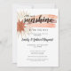 A Boho style baby shower invitation featuring a watercolor rainbow with gold glitter rays, and a little ray of sunshine on the way theme. A bold bohemian style with earthy colours.