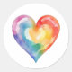 Add a splash of colour and love wherever you go with this vibrant watercolor heart round sticker. Hand-painted in a dreamy blend of rainbow hues, this heart symbolises pride, kindness, and joy. This design brings warmth and positivity to any celebration.