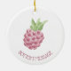 Watercolor raspberry with green leaves. Customise with your own message in matching dark raspberry.