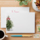 This design features a Christmas tree design, with an elegant red and green style, a simple minimalist, stylish typography, with cute watercolor and a return address, with calligraphy script, and a trendy, 5x7, festive holiday envelope.