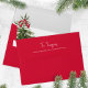 This design features a Christmas tree design, with an elegant red and green style, a simple minimalist, stylish typography, with cute watercolor and a return address, with calligraphy script, and a trendy, 5x7, festive holiday envelope.