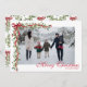 Watercolor Red Bow Mistletoe Garland Photo Holiday Card