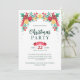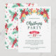 This Christmas Party design features a hand painted watercolor border of red cardinal birds, oranges, poinsettia flowers, holly and red berries, pine leaves and red florals. You can fully customise all the text to suit your event. On the back of the card is a pattern or red cardinal birds and Christmas winter greenery. See the whole matching collection.