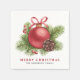 Add a festive accent to your tablescape with these customisable paper napkins. It features watercolor red Christmas ball ornament, pine needles, pine cone and winterberries. Personalise these holiday paper napkins by adding your details. Matching items are available.