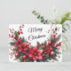 Watercolor Red Merry Christmas Flower Holiday Card.