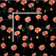 Watercolor Red Poppy Flowers Floral Black Fabric