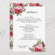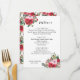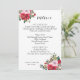 The design features an elegant watercolor floral wreath decorated with peonies, roses, eucalyptus greenery, and more in shades of red, green, and pink. The design also features a modern font and text layout. A matching floral arrangement is added to the back to carry over the overall theme. The natural palette makes it great for summer weddings, boho weddings, fall weddings, and rustic weddings.