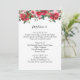 The design features an elegant watercolor floral wreath decorated with peonies, roses, eucalyptus greenery, and more in shades of red, green, and pink. The design also features a modern font and text layout. A matching floral arrangement is added to the back to carry over the overall theme. The natural palette makes it great for summer weddings, boho weddings, fall weddings, and rustic weddings.
