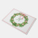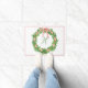 Watercolor Red Striped Bow Wreath Monogram Doormat