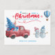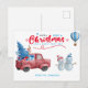 Watercolor Red Truck Christmas Scene Holiday Postcard