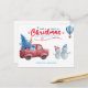 A lovely watercolor illustration featuring the famous red Christmas truck packed with a decorated Christmas tree, presents, and baubles, two merry snowmen, and a blue hot air balloon on a white background. We have added a decorative Christmas greeting as well. All you need to do is personalise the postcard, order it, and send it out to your loved ones.
