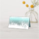 This modern wedding place card is slightly informal with warm, personal feel and features an abstract, watercolor design resembling reflections on water. This example has a gradient colour palette from soft teal to deep sea green. Personalise with the bride and groom's names and wedding date using the provided template. Search ID774 to see complete matching set and additional colour options.