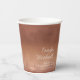 This minimalist wedding paper cup has a warm, personal feel and features an abstract, watercolor design resembling reflections on water. This example has a gradient color palette from pale peach to dark terra cotta. Customize with the bride and groom's names, a personal message and the wedding date using the provided template. Search ID774 to see complete matching set and additional color options.