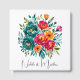 Announce your wedding with this beautiful watercolor design featuring emerald, green, army green, teal, red, and orange blooms and lush foliage. A vibrant and artistic choice for your special day.