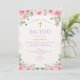Watercolor Rose Pink Floral Girl Baptism Invitation