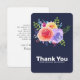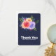 A party (or other occasion) thank you card with a nice bouquet of watercolor roses with sprigs, leaves and branches all together in a colourful floral arrangement. Navy blue background.