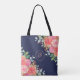 Watercolor Roses Floral Navy Monogram Tote Bag