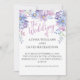 This simple and stylish wedding invitation features a sweet watercolor wreath of pink and lilac flowers and peonies, with modern typography in pink.