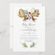 Trendy wild woodland baby shower invitation featuring hand painted watercolor bouquets with forest berries - blueberry, blackberries and sprigs, pine cones, ferns, feathers and moose horns.