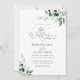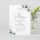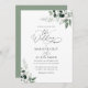 sage green wedding invitation, watercolor greenery foliage and elegant black lettering script. Customise the text and colours.