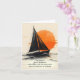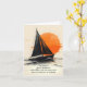 Watercolor sketch of a sailboat and glowing sun on ocean water for a sympathy thank you from the family.