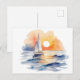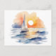 Watercolor Sailing Sailboat Nautical Sunset Ocean Postcard
