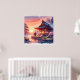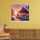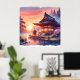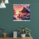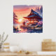 Watercolor Sakura Japanese Temple in Sunset Poster