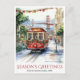 Watercolor San Francisco Cable Car Christmas Travel Holiday Postcard.