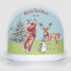WATERCOLOR SANTA PLAYS GOLF REINDEER WAITS SNOW SNOWGLOBE