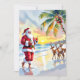 Watercolor Santa & Reindeer on the Beach Christmas Holiday Card