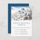 Amaze your guests with this Santorini theme wedding RSVP card featuring beautiful Greece landscape.