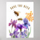 Watercolor elegant colourful floral Save the bees nature lover poster,