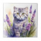 Watercolor Scottish Fold Cat in Lavender Field Tile
