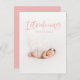 Stunning pink watercolor script text photo birth announcement. Part of a collection.